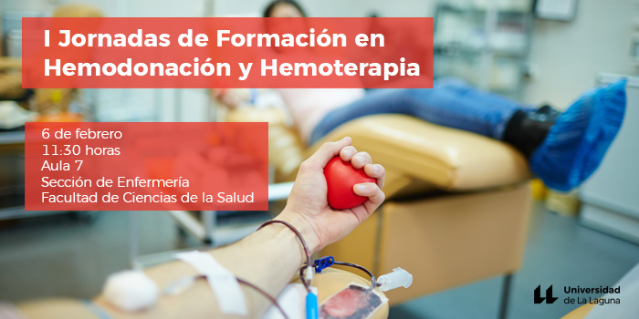 El próximo jueves 6 de febrero se llevará a cabo en la Sección de Enfermería de la Universidad de La Laguna la I Jornada de Formación en Hemodonación y Hemoterapia. Esta actividad, que resultará de interés especialmente al alumnado de la Facultad de Ciencias de la Salud, se organiza con el objetivo de colaborar en la difusión de la importancia de la hemodonación y potenciar la autosuficiencia en hemoderivados en la Comunidad Canaria. Contaremos con la colaboración del personal del Instituto Canario de Hemodonación y Hemoterapia (ICHH).