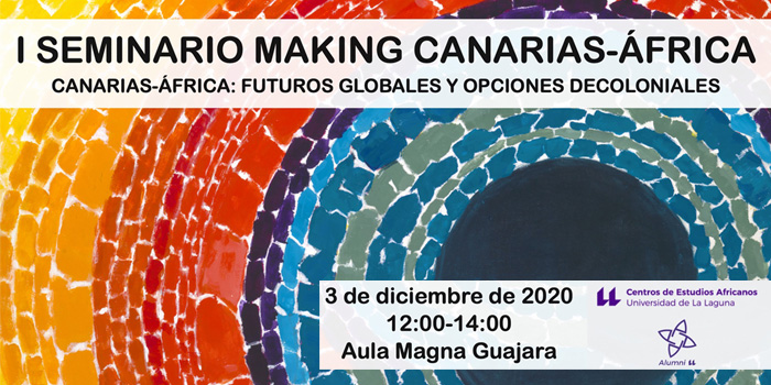 Este I Seminario Making Canarias-África quiere potenciar y consolidar los encuentros entre el alumnado africano y canario de la Universidad de La Laguna y diferentes investigadores/as, que trabajan sobre la cultura canaria y africana, para reflexionar conjuntamente sobre las experiencias y dinámicas interculturales asociadas a las dos áreas geográficas. A través de este diálogo intercultural se debatirá sobre los estereotipos, imaginarios, representaciones y los prejuicios acumulados por las herencias coloniales europeas sobre los que se han construido las relaciones Canarias-África. El objetivo principal es crear un espacio crítico donde exponer las dinámicas coloniales y decoloniales que han configurado las memorias sociales y las identidades canario-africanas y, de este modo, por un lado, poder reflexionar sobre las invenciones ideológicas y discursivas que han impedido un acercamiento y conocimiento real entre Canarias y África. Y, por otro, construir una sociedad más democrática e integradora capaz de fomentar la diversidad cultural.