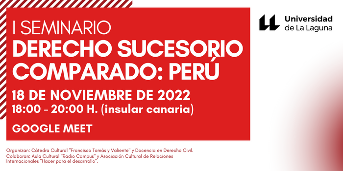 Actividad de Extensión Universitaria organizada por la Cátedra Cultural «Francisco Tomás y Valiente» y Docencia en Derecho Civil, con la colaboración del Aula Cultural «Radio Campus» y la Asociación cultural de relaciones internacionales «Hacer para el Desarrollo», que se celebrará en modalidad online el 18 de noviembre de 2022 de 18:00 a 20:00 horas (insular canaria), dirigida a estudiantes y profesionales del Derecho, amén de cualquier persona con interés en la temática propuesta.