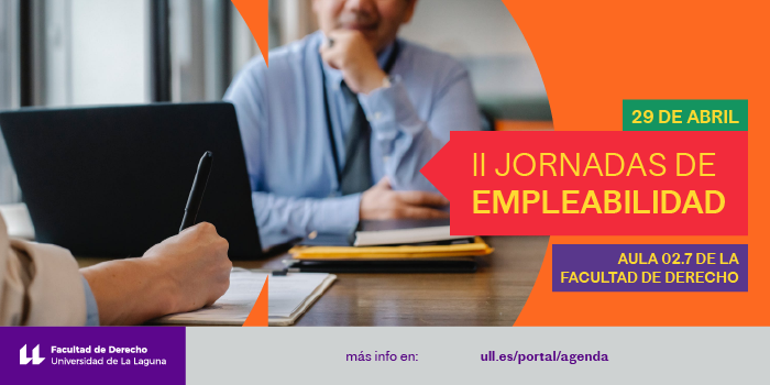 El próximo 29 de abril de 2022 tendrá lugar la celebración de las II Jornadas de Empleabilidad, organizadas por la profesora Lucía Dans Álvarez de Sotomayor, como directora, y por el profesor Juan José Rodríguez Bravo de Laguna, como secretario, en colaboración con la Facultad de Derecho de la ULL.