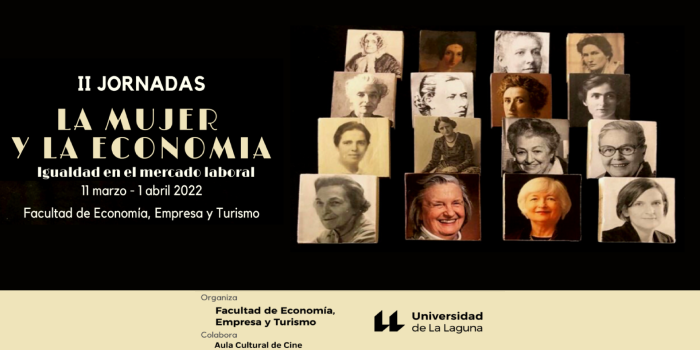La Facultad de Economía, Empresa y Turismo de la Universidad de La Laguna celebra todos los viernes del 11 de marzo al 1 de abril de 2022 las «II JORNADAS DE LA MUJER Y LA ECONOMÍA – Igualdad en el mercado laboral», con actividades diversas (exposición, cine, curso, coloquio, charlas y debate) diseñadas especialmente para el disfrute y la participación de nuestra comunidad universitaria, según el siguiente programa adjunto.