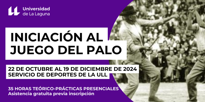 El Aula Cultural de Juegos y Deportes Autóctonos y Tradicionales Canarios con la colaboración del Colectivo Universitario de Palo Canario organizan este curso, que se celebrará en modalidad presencial en el Servicio de Deportes de la Universidad de La Laguna entre los días 22 de octubre y 19 de diciembre de 2024.