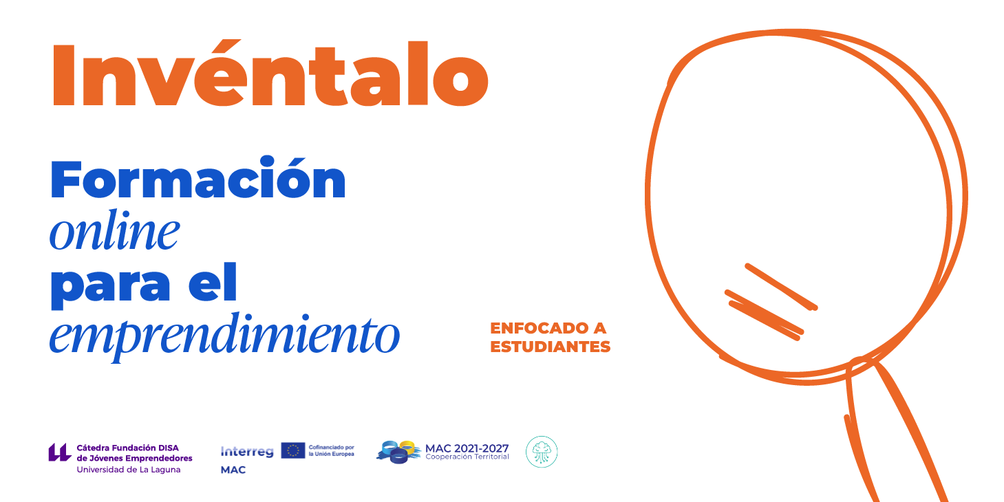Invéntalo es un curso de emprendimiento 100% online, dirigido principalmente a estudiantes de doctorado y máster de la Universidad de La Laguna, con el fin de potenciar la resolución de problemas de manera innovadora. Para ello, se cruzan de la mano las nuevas metodologías de emprendimiento ágil y el método científico, de manera que se dote al alumnado de herramientas básicas para convertir su trabajo de investigación en proyectos potencialmente monetizables. El contenido del curso está adaptado a las diferentes circunstancias del alumnado y podrá elegir seguirlo a través de podcast o de material visual.