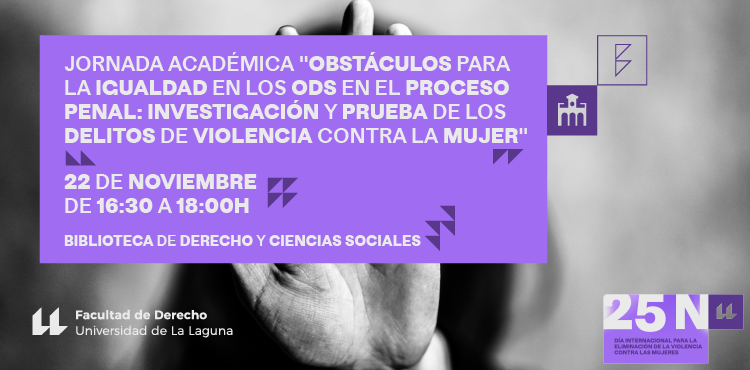 Con motivo de la conmemoración del Día Internacional de la Eliminación de la Violencia contra la Mujer, la Facultad de Derecho de la Universidad de La Laguna, a través del Área de Derecho Procesal, organiza la jornada académica «Transformando obstáculos para la igualdad en los ODS en el proceso penal: Investigación y prueba de los delitos de violencia contra la mujer». Este encuentro busca promover una reflexión profunda desde la perspectiva académica y práctica sobre un problema que continúa siendo un desafío global.