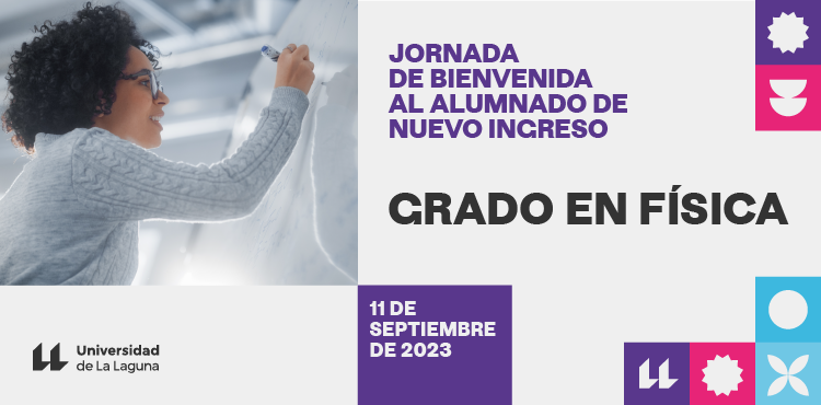 Con la intención de acoger especialmente al alumnado de nuevo ingreso que se incorpora a los estudios superiores del Grado en Física y Grado en Matemáticas se realiza una jornada de bienvenida que se celebrarán el 11 de septiembre en el Aula Magna Blas Cabrera Felipe, en el Edificio de Física y Matemáticas de la Facultad de Ciencias.