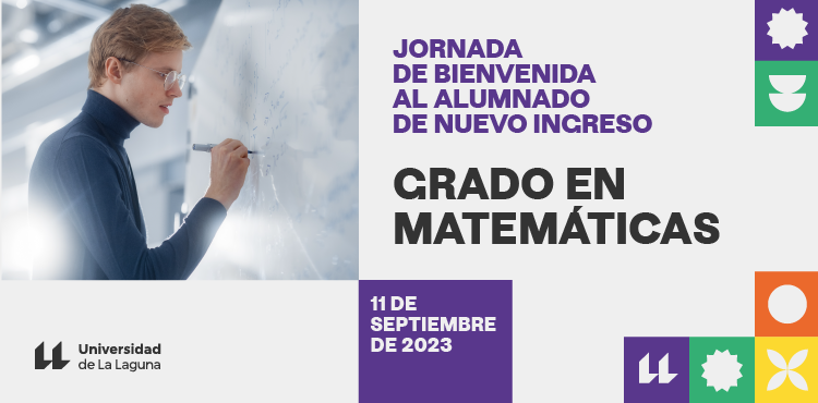Con la intención de acoger especialmente al alumnado de nuevo ingreso que se incorpora a los estudios superiores del Grado en Física y Grado en Matemáticas se realiza una jornada de bienvenida que se celebrarán el 11 de septiembre en el Aula Magna Blas Cabrera Felipe, en el Edificio de Física y Matemáticas de la Facultad de Ciencias.