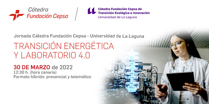 El miércoles 30 de marzo, a las 12:30 horas en el Aula 2-5 de la Facultad de Ciencias, Sección de Química, tuvo lugar la Jornada Transición Energética y Laboratorio 4.0 organizada por la Cátedra Fundación Cepsa de Transición Ecológica e Innovación de la Universidad de La Laguna.