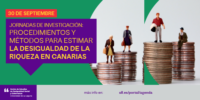 El Centro de Estudios de Desigualdad Social y Gobernanza de la Universidad de la Laguna organiza las Jornadas de Investigación: Procedimientos y Métodos para estimar la desigualdad de la riqueza en Canarias, que se celebrarán el 30 de septiembre en la Sala de Juntas Facultad de Derecho.