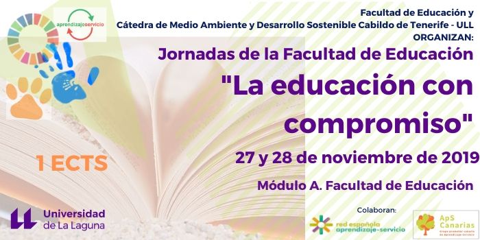 La Facultad de Educación, como cada año, con motivo del día de la Facultad, organizan un programa de actividades que pretende, además de conmemorar su día, contribuir a la formación de su alumnado y recordar la importancia de desarrollar prácticas educativas comprometidas. Partiendo de la idea de que la educación es compromiso o, dicho de otra manera, de que la educación, sin compromiso, no es nada, han organizado, en colaboración con la Cátedra de Medio Ambiente y Desarrollo Sostenible del Cabildo de Tenerife – ULL, una serie de charlas, talleres y conferencias que se desarrollarán en los días 27 y 28 de noviembre, en horario de mañana y tarde.