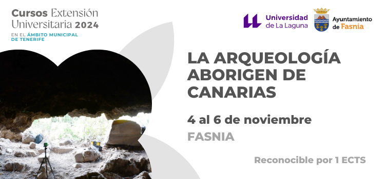Fasnia acoge el curso «La arqueología aborigen de Canarias», organizado conjuntamente por el Vicerrectorado de Cultura y Extensión Universitaria y el Ayuntamiento de Fasnia, dentro de la programación de los Cursos de Extensión Universitaria en el ámbito municipal “Ayuntamientos 2024”, que se celebrará los días 4, 5 y 6 de noviembre de 2024.