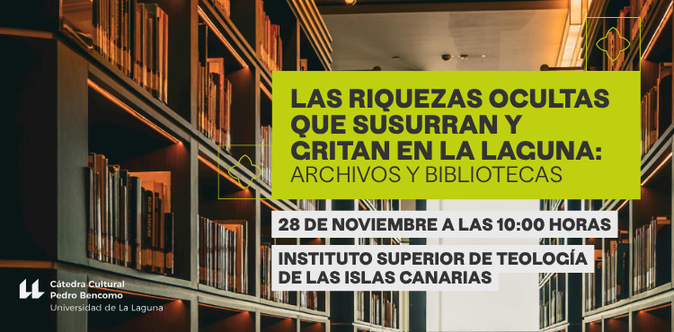 La Cátedra Pedro Bencomo de la Universidad de La Laguna ha organizado una actividad en la que se realizarán un conjunto de itinerarios didácticos por diversos archivos y bibliotecas de la ciudad de La Laguna. El día 28 de noviembre a partir de las 10:00 horas está programada una visita al Instituto Superior de Teología de las Islas Canarias en la que Gerardo Trujillo, profesor de este centro, realizará una presentación titulada “La historia de las Bibliotecas ‘Las Musas de Alejandría”. A continuación se realizará una visita guiada a la Biblioteca del Seminario Diocesano de Tenerife.