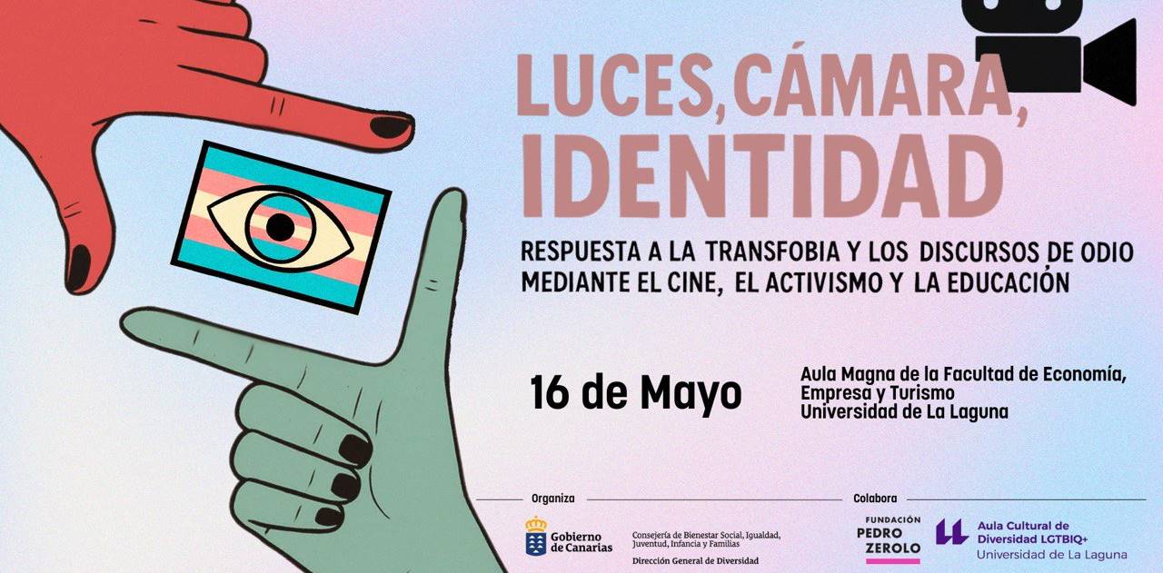 La Universidad de La Laguna acoge, a través del Aula Cultural de Diversidad LGBTIQ+, la jornada «Luces, cámara, identidad. Respuesta a la transfobia y los discursos de odio mediante el cine, el activismo y la educación», una iniciativa impulsada por la Dirección General de Diversidad del Gobierno de Canarias y la Fundación Pedro Zerolo, que se celebrará en la antesala del Día Internacional contra la LGBTIQfobia, el día 16 de mayo de 2025, a partir de las 09:00 horas, en el Aula Magna de la Facultad de Economía, Empresa y Turismo.