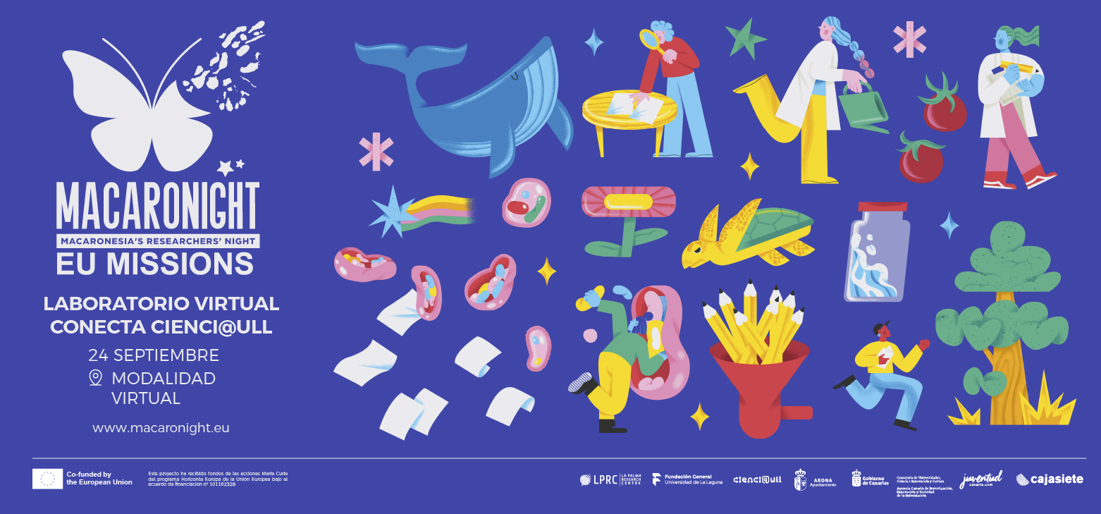 El próximo 24 de septiembre de 2025, en horario de 9:00 a 14:00 h y en modalidad virtual, se celebra una nueva edición del Laboratorio Virtual Conecta Cienci@ULL en el marco de MacaroNight 2025 (Noche Europea de los Investigadores e Investigadoras de la Macaronesia).
