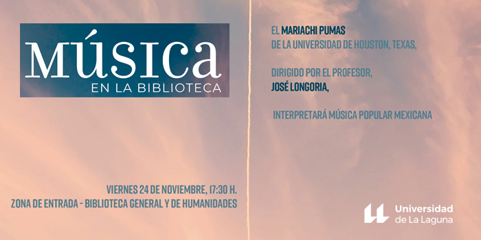 Bajo la dirección del profesor José Longoria, el Mariachi Pumas de la Universidad de Houston, Texas, interpretará música popular. El grupo está constituido en su mayoría por alumnado. Forma parte de uno de los pocos programas universitarios de mariachi que existen en Los Estados Unidos. La presencia del mariachi en la Biblioteca se debe a un acuerdo de colaboraciones puntuales entre la ULL y el Consulado de México.