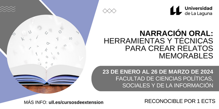 El Aula Cultural de Narración Oral organiza este curso que se celebrará en la Facultad de Ciencias Políticas, Sociales y de la Información (Edifico de la Pirámide) entre el 23 de enero y el 26 de marzo de 2024.