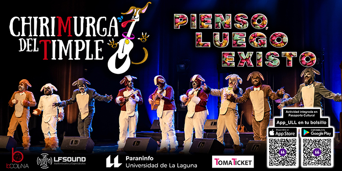 La Chirimurga del Timple, esta miscelánea entre murga y chirigota, llega al Paraninfo de la ULL con su nuevo personaje “Pienso, luego existo” para ponerlo todo patas arriba.