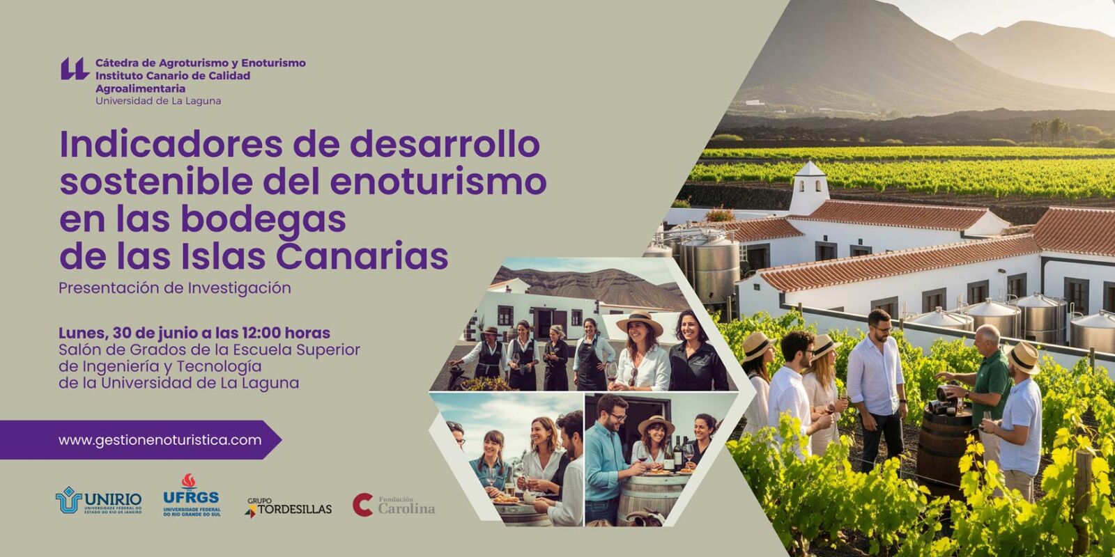 Fruto de la colaboración académica entre la Universidad Federal del Estado de Río de Janeiro (UNIRIO) y la Cátedra de Agroturismo y Enoturismo de Canarias del Instituto Canario de Calidad Agroalimentaria y de la Universidad de La Laguna se va a presentar los indicadores de desarrollo sostenible del enoturismo en las bodegas de las Islas Canarias. Este estudio no solo presenta los indicadores de desarrollo sostenible desarrollados, sino que también evalúa el estado actual del enoturismo en la región, ofreciendo recomendaciones prácticas para impulsar la sostenibilidad del sector. Además, se buscará fomentar un diálogo constructivo y futuras colaboraciones entre la academia, las bodegas y las instituciones, destacando la importancia de la cooperación local e internacional en la investigación aplicada.