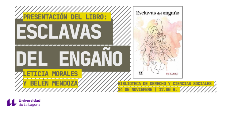 La Biblioteca de Derecho y Ciencias Sociales de la Universidad de La Laguna va a realizar el lunes, 24 de noviembre a las 17:00 horas, la presentación del libro de la Asociación Betania, “Esclavas del engaño”, que será llevado a cabo por Leticia Morales y Belén Mendoza.