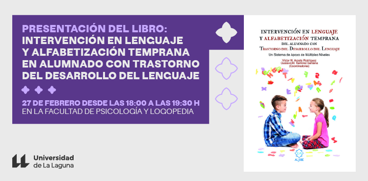 El día 27 de febrero se realizará la presentación del último libro escrito por los miembros del grupo de Investigación en Dificultades de Lenguaje ACENTEJO, durante la celebración de la Semana del Patrón de la Facultad de Psicología y Logopedia. Concretamente el acto, en formato taller práctico, está programado para el jueves 27 de febrero desde las 18 a las 19,30 horas.