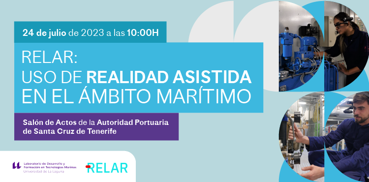 Remote Learning and Examination based on Augmented Reality (RELAR), un proyecto European Erasmus+, perteneciente a la convocatoria extraordinaria Erasmus+: Asociaciones Estratégicas en Formación Profesional, celebra el 24 de julio de 2023 a las 10:00 en el Salón de Actos de la Autoridad Portuaria de Santa Cruz de Tenerife, el evento «RELAR: uso de realidad asistida en el ámbito marítimo».
