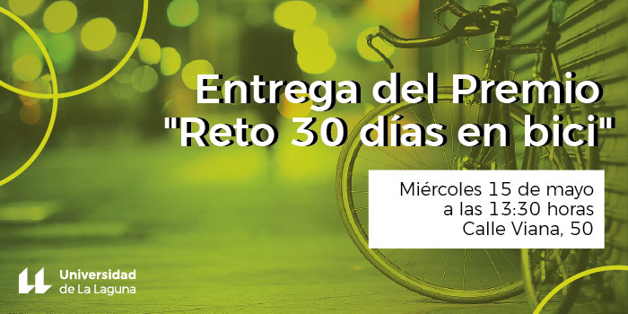 El miércoles 15 de mayo a las 13:30 horas en la calle Viana 50 se hará entrega del premio a la persona ganadora del “Reto 30 días en bici”, acción incluida en la III Semana de Movilidad Sostenible de la ULL y enmarcada en la Política de Sostenibilidad Ambiental de la institución académica que apuesta por potenciar e incrementar el uso de medios de transporte más sostenibles y saludables, contribuyendo así con los Objetivos de Desarrollo Sostenible contemplados en la agenda 2030 de Naciones Unidas.