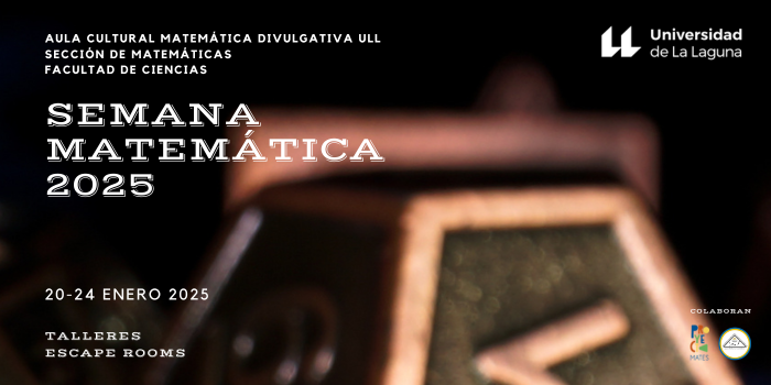 El Aula Matemática Divulgativa junto con la Sección de Matemáticas de la Facultad de Ciencias de la Universidad de La Laguna organiza nuevamente la Semana Matemática. En esta ocasión las fechas serán del 20 al 24 de enero de 2025. El objetivo central es divulgar las matemáticas entre el alumnado de secundaria (4º y 3º) y bachillerato (1º y 2º).