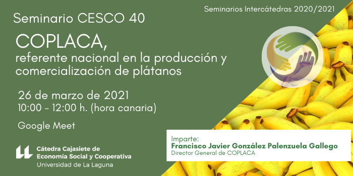 El seminario versará sobre el proceso de expansión y crecimiento de COPLACA, la mayor cooperativa agraria de segundo grado de Canarias, y líder en producción y comercialización de plátanos. Se analizará su estructura productiva, organización empresarial, distribución de los socios, así como las fases de internacionalización. Teniendo al mercado peninsular como referente hacia donde se dirigen la mayor parte de la producción. Conoceremos las estrategias y respuesta de la cooperativa antes los diferentes ciclos económicos, desde la crisis financiera de 2008-2024 hasta la actual crisis sanitaria derivada de la expansión del COVID-19.