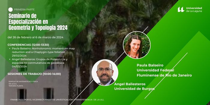 El primero de ellos tendrá lugar del 25 de febrero al 6 de marzo de 2024. En este Seminario participan cualificados especialistas nacionales y extranjeros con los que se pretende estudiar nuevas técnicas encaminadas a la resolución de diferentes problemas que ocupan las tareas de investigación de parte del profesorado del Departamento, que permitan abrir nuevas vías de investigación y que comuniquen, dentro de su campo, el enfoque y el devenir de las recientes investigaciones. En esta primera parte, los invitados son Paula Balseiro, Profesora Adjunta de la Universidad Federal Fluminense de Rio de Janeiro y Angel Ballesteros, Catedrático de la Universidad de Burgos. Ellos impartirán conferencias y realizarán diferentes sesiones de trabajo.