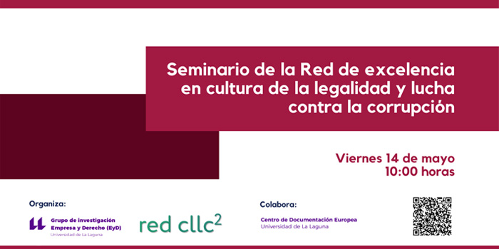 El grupo de investigación Empresa y Derecho de la Universidad de La Laguna organiza, en el marco de su participación en la Red de excelencia Cultura de la Legalidad y Lucha contra la Corrupción el seminario que lleva por título la misma denominación de la citada Red: Cultura de la legalidad y lucha contra la corrupción. En él participarán especialistas en el estudio de la citada materia, como son Felipe Gómez Isa, Profesor de Derecho internacional público de la Universidad de Deusto, quien disertará sobre «Corrupción y empresas transnacionales: una aproximación desde los derechos humanos»; María Farnés Martínez Figola, Fiscal delegada de la Fiscalía Especial contra la Corrupción y la Criminalidad Organizada, actualmente Fiscal Jefa de Santa Cruz de Tenerife, que expondrá en relación con el tema «Empresa pública y derecho penal»; e Israel Expósito, miembro del Cuerpo Superior de Administradores Generales de la Comunidad Autónoma de Canarias, que disertará sobre «Compromiso autonómico en la lucha contra la corrupción».