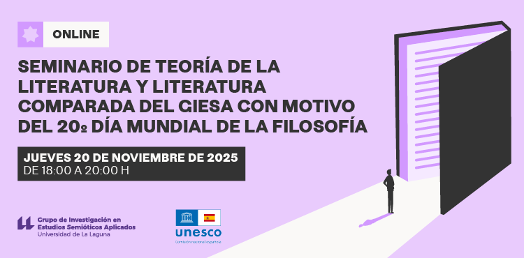 El jueves 20 de noviembre de 18.00 a 20.00 h. tendrá lugar una edición especial de nuestro Seminario de Teoría de la Literatura y Literatura Comparada del GIESA con motivo del 20º Día Mundial de la Filosofía, proclamado así oficialmente en 2005 por parte de la UNESCO, cuya Comisión Nacional Española patrocina nuestro evento, titulado Literatura y Filosofía.