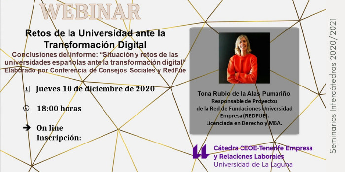 Actividad de Extensión Universitaria organizada por la Cátedra CEOE-Tenerife Empresa y Relaciones Laborales de la ULL dentro del marco de «Seminarios Intercátedras 2020/2021».