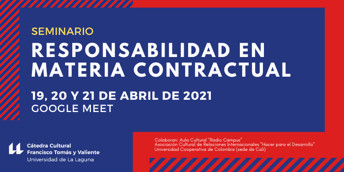 Actividad de Extensión Universitaria organizada a través de la Cátedra Cultural «Francisco Tomás y Valiente» que se celebrará en modalidad online los días 19, 20 y 21 de abril de 2021.