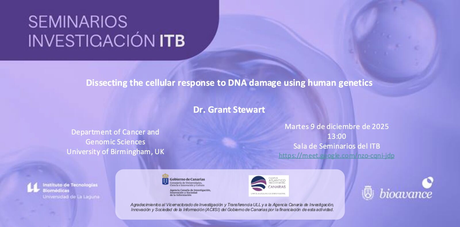 El programa de Seminarios de Investigación ITB 2025 continúa el martes día 9 de diciembre a las 13:00 h con un seminario del Dr. Grant Stewart, que impartirá la charla «Dissecting the cellular response to DNA damage using human genetics«.