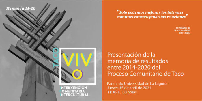 Tras siete años se presenta una memoria donde se hace un breve recorrido por las actividades que se desarrollaron y los resultados obtenidos. Una historia de encuentros y relaciones comunitarias en Taco que contribuyeron (y siguen contribuyendo) a la convivencia y la cohesión social que merece la pena ser conocida.