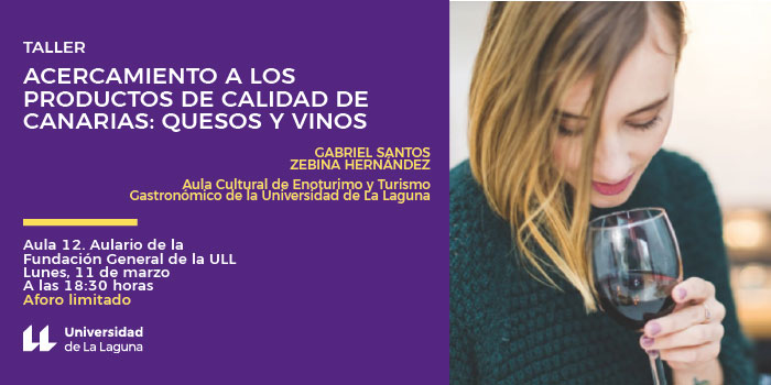 Taller de Acercamiento a los Productos de Calidad de Canarias, en especial a los Vinos y Quesos, impartido por los docentes del Aula Cultural de Enoturismo y Turismo Gastronómico de la Universidad de La Laguna, Gabriel Santos y Zebina Hernández.