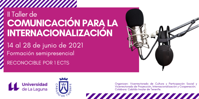 Actividad de Extensión Universitaria organizada por el Aula Cultural «Radio Campus» junto con el Vicerrectorado de Proyección, Internacionalización y Cooperación de la ULL, con la colaboración del Excmo. Cabildo Insular de Tenerife, que se que se celebrará en modalidad semipresencial entre el 14 y el 28 de junio de 2021.
