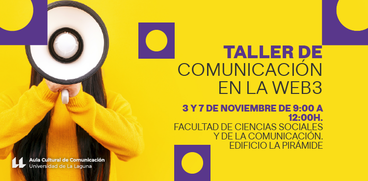 El aula cultural de Comunicación de la Universidad de La Laguna realiza un taller de Comunicación en la web 3, de utilidad para todos los universitarios, dada la importancia que tiene actualmente el conocimiento del funcionamiento de los procesos comunicativos en la sociedad, y de la alfabetización mediática como proceso de conocimiento de los entornos sociales, así como los límites éticos de la información, tanto a través de los medios de comunicación tradicionales como en los del mundo digital.