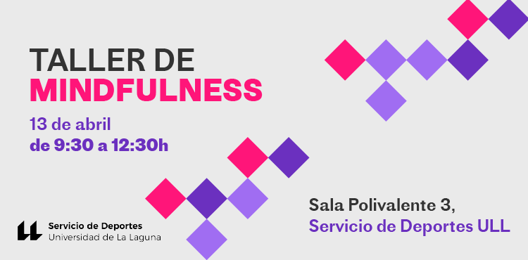 El próximo sábado 13 de abril de 2024, de 9:30 a 12:30h, en la sala polivalente 3 de las instalaciones del Servicio de Deportes de la ULL se realizará un Taller de Mindfulness, impartido por Jaime Rojas Hernández, doctor en Física y psicólogo general sanitario e investigador.