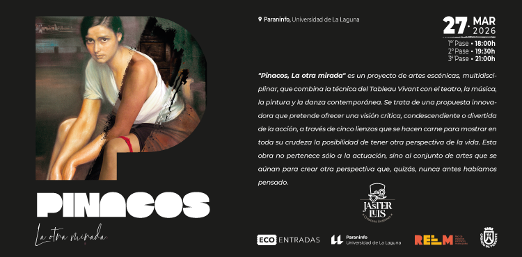 Una propuesta artística que aúna teatro, performance, poema visual, danza y música. Pinacos, la otra mirada, es la posibilidad de obtener una visión más crítica y disruptiva de las afamadas obras pictóricas que muestran acción, cobrando vida, más allá del instante congelado en la pintura.