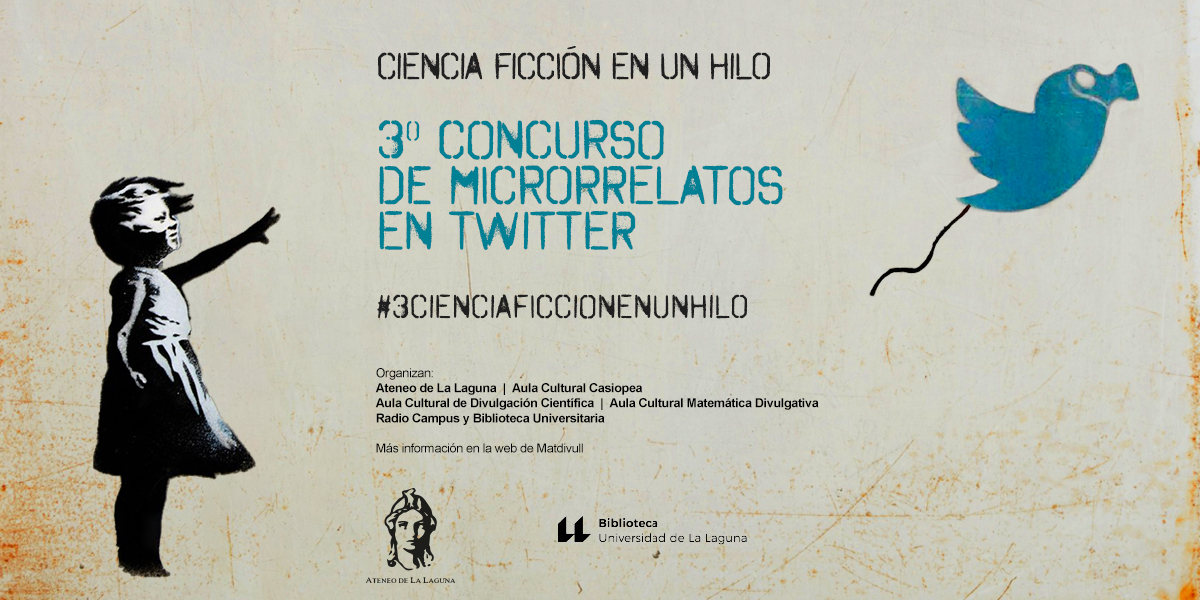 El Ateneo de La Laguna, las Aulas culturales de la ULL “Cassiopeia”, “Divulgación Científica”, “Matemática Divulgativa” y “Radio Campus ULL”, con el fin de promocionar la creación literaria y la divulgación científica, han convocado el 3º concurso de micro-relatos «Ciencia ficción en un hilo». El martes 25 de octubre a las ocho de la tarde tendrá lugar mediante videoconferencia la entrega de premios, cuya finalidad es promocionar la creación literaria y la divulgación científica.