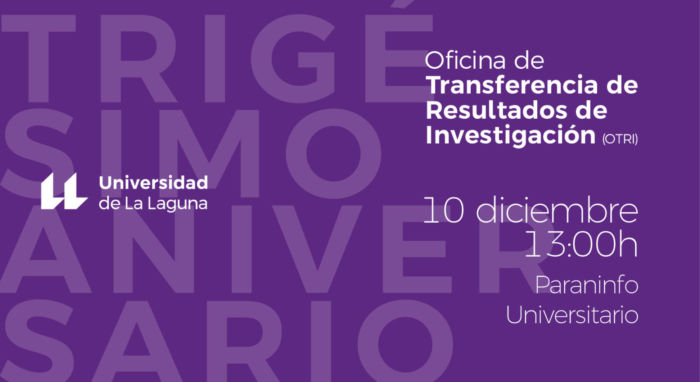 Celebración del trigésimo aniversario de la Oficina de Transferencia de Resultados de Investigación (OTRI) que tendrá lugar el 10 de diciembre de 2019, a las 13:00 horas, en el Paraninfo Universitario.