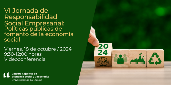 La Cátedra Cajasiete de Economía Social y Cooperativa (CESCO) organiza esta jornada con la colaboración del Instituto Universitario de Investigación Social y Turismo (ISTUR). Se celebrará en modalidad online el 18 de octubre 2024 de en horario de 9:30 a 12:00 horas.