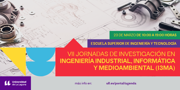 Los días 23 y 24 de marzo, en la Escuela Superior de Ingeniería y Tecnología, tendrán lugar las VII Jornadas de Investigación en Ingeniería Industrial, Informática y Medioambiental (I3MA), donde se celebrarán seminarios de especialización organizados por la Comisión de Ordenación Académica del Programa de Doctorado de Ingeniería Industrial, Informática y Medioambiental (I3MA) de la ULL, relativos a las cuatro líneas de investigación que integran el programa.