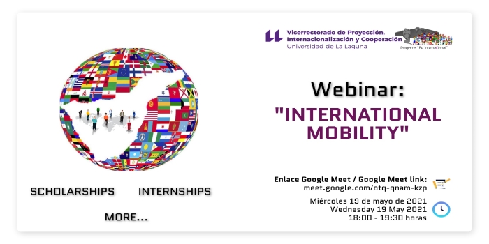 Conoce las diferentes movilidades internacionales que se pueden realizar desde la Universidad de La Laguna hacia otros países del mundo, bien sea con beca, prácticas, escuelas de verano o voluntariado. Tanto si eres un estudiante de grado o de posgrado y desconoces las posibilidades de movilidad internacional que existen o, si ya las conoces pero necesitas más información, este es tu webinar. Se impartirá en inglés, pero puedes intervenir o preguntar a nuestras ponentes en español si lo prefieres. ¡Esperamos verte!