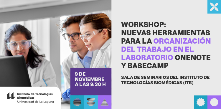 El jueves 9 de noviembre entre las 9:30 y las 13:oo h, el Instituto de Tecnologías Biomédicas organizada un Workshop sobre Nuevas herramientas para la organización del trabajo en el laboratorio: OneNote y Basecamp. Se trata de un Workshop gratuito y abierto a todos los investigadores del instituto que estén interesados.