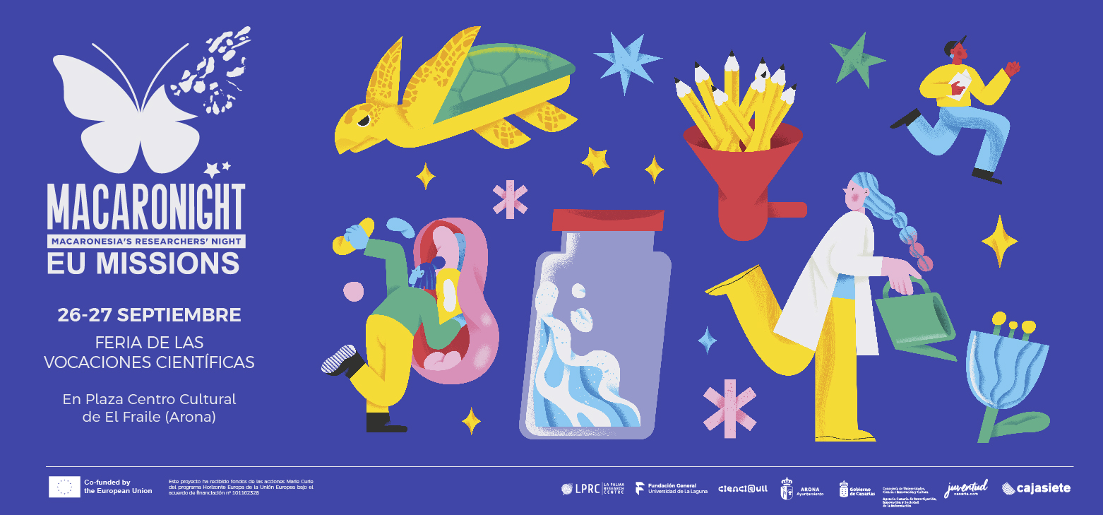 Como cada año, este 26 y 27 de septiembre tendrá lugar la XI edición de la Feria de las Vocaciones Científicas, con el objetivo de fomentar las vocaciones científicas de los y las jóvenes por la ciencia, la tecnología, la innovación y el emprendimiento para el desarrollo de su futuro profesional. La feria se enmarca en la Noche Europea de los Investigadores y las Investigadoras de la Macaronesia (MacaroNight 2024).