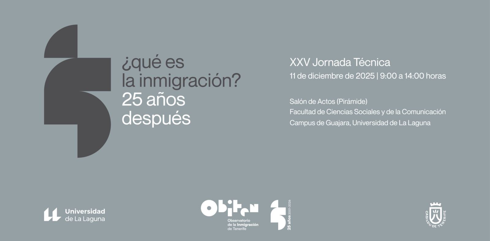 El Observatorio de la Inmigración de Tenerife (OBITen) organiza la XXV Jornada Técnica “¿Qué es la inmigración? 25 años después”, un encuentro especialmente significativo en el que se inician las actividades relacionadas con la conmemoración del 25.º aniversario de OBITen, mediante la inauguración de una exposición que muestra la trayectoria del Observatorio y su actividad ligada a la expresión de los fenómenos migratorios en Tenerife.