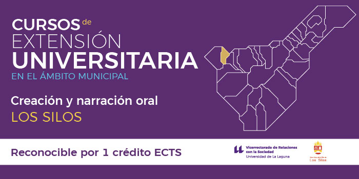 Curso de Extensión Universitaria con la colaboración del Iltre. Ayuntamiento de la Villa de Los Silos, en el marco del XXIV Festival Internacional del Cuento de Los Silos, dentro de la programación de la convocatoria de Cursos de Extensión Universitaria en el ámbito municipal “Ayuntamientos 2019”.