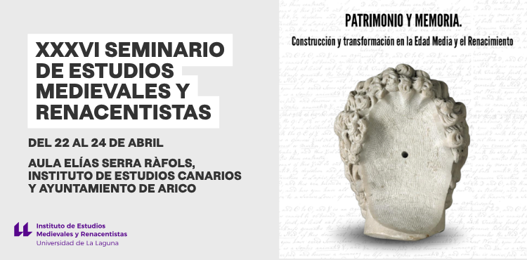 XXXVI Seminario del Instituto de Estudios Medievales y Renacentistas de la Universidad de La Laguna, que en esta ocasión girará en torno al tema «Patrimonio y memoria. Construcción y transformación en la Edad Media y el Renacimiento». Como ya es tradición, el seminario contará con la presencia de especialistas nacionales e internacionales dentro del ámbito del medievalismo y de los estudios renacentistas, contribuyendo al carácter amplio y transversal que ha presentado este evento en sus 36 ediciones.