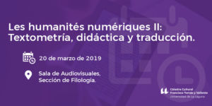 Find out more »En el marco de las actividades científicas desarrolladas por el equipo LexHis (Lexicografía e Historia), se organizan, entre el 20 y el 22 de marzo, tres seminarios dedicados a la familiarización y a la explotación de diferentes recursos digitales puestos al servicio de la textometría, la didáctica y la traducción. Con la celebración de estas...